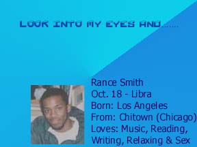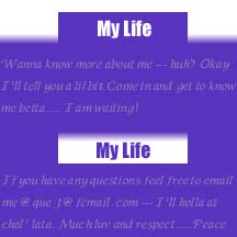 Wassup, peeps? Okay, now dat you are here let me give you tha personal tour. You'll find links below which will help ya navigate thru tha site. I know you'll enjoy yourself!